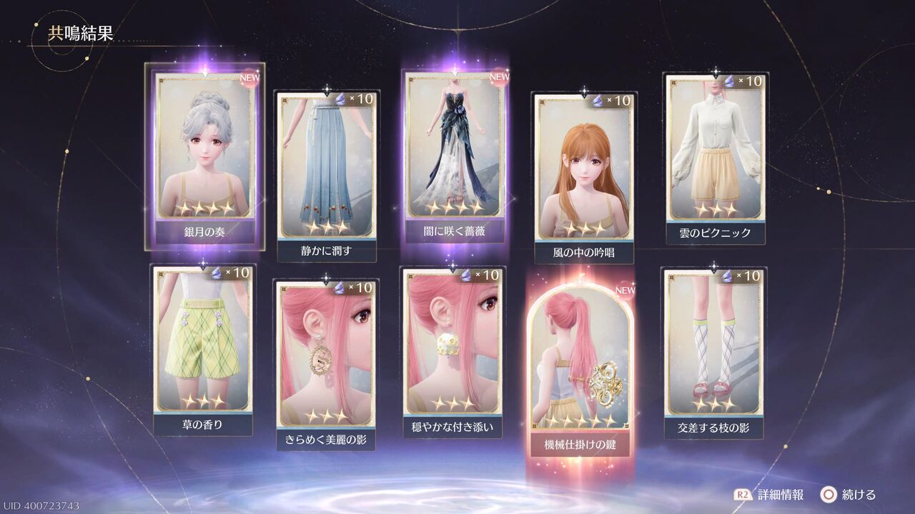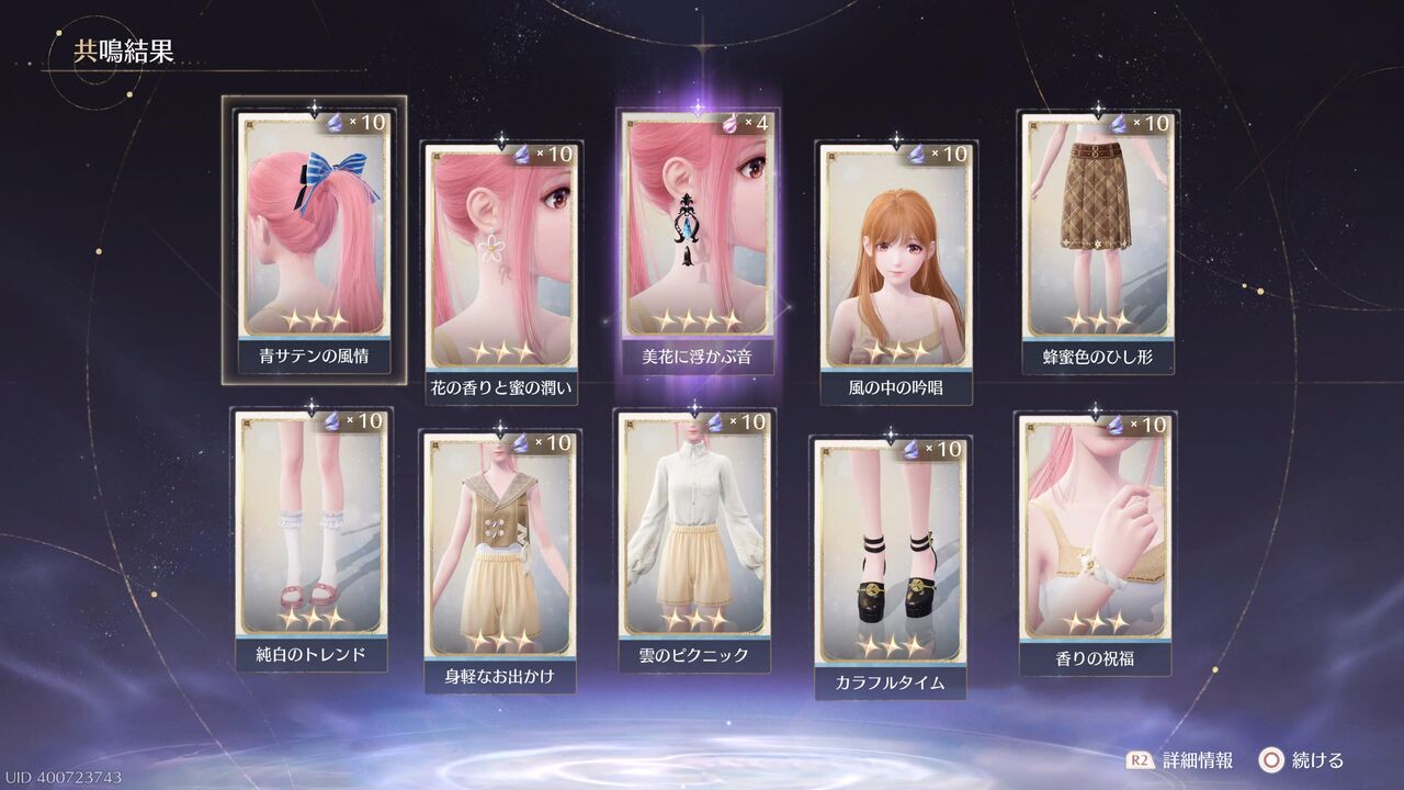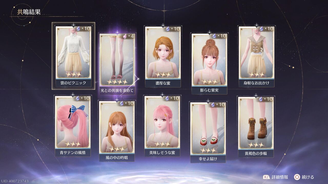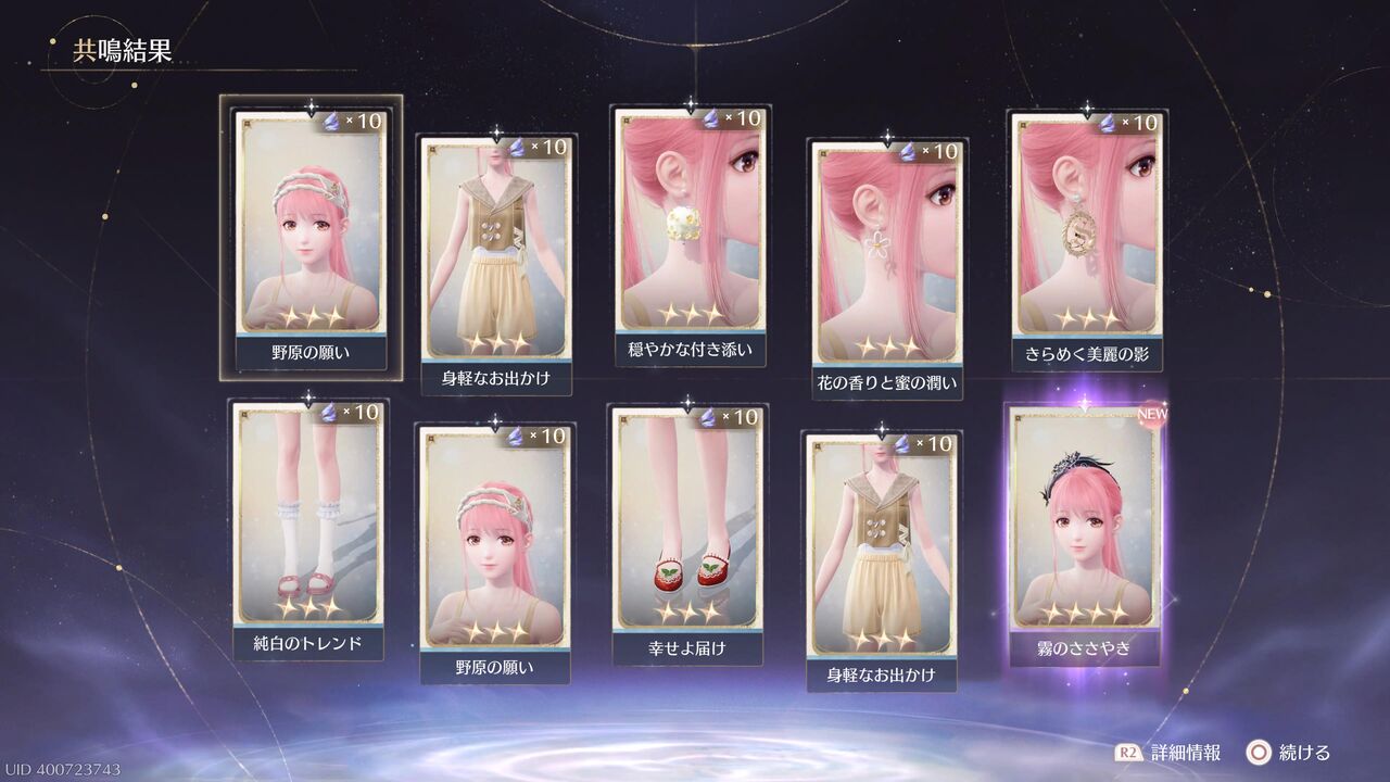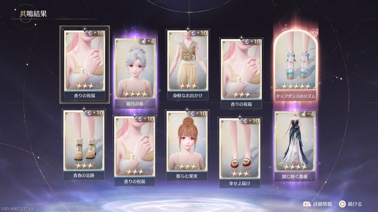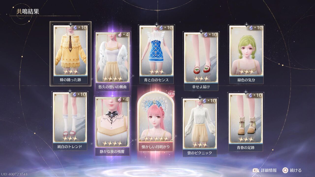 あと10連すると衣装進化用の素材が手に入るが、とりあえずここで終わっておこうか・・・