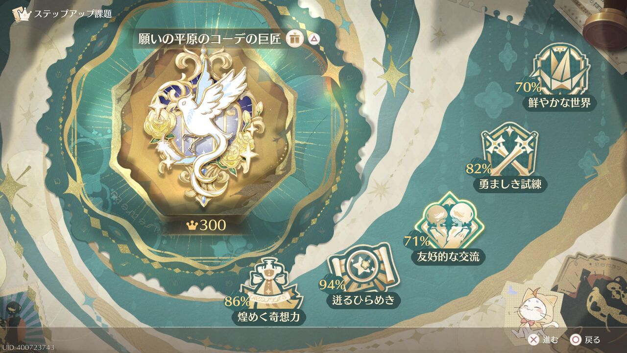 条件の中には「キュートタイプの衣装を合計100回レベルアップ」みたいなキツめのもありますが、全部達成しなくても全ての報酬がもらえるのでご安心を