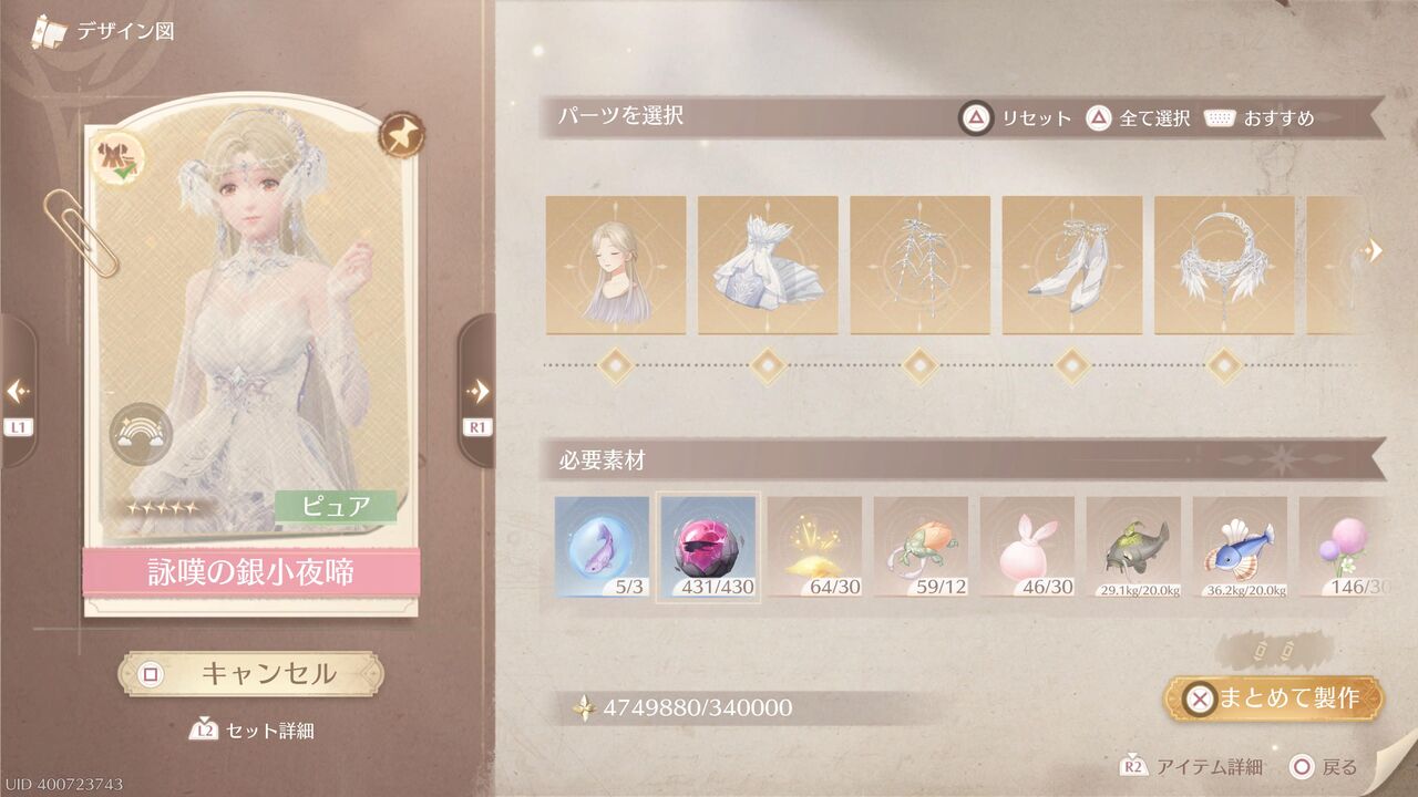 新しい★4衣装「霧に漂う幻霊」のパーツは3つ出ておるが・・・