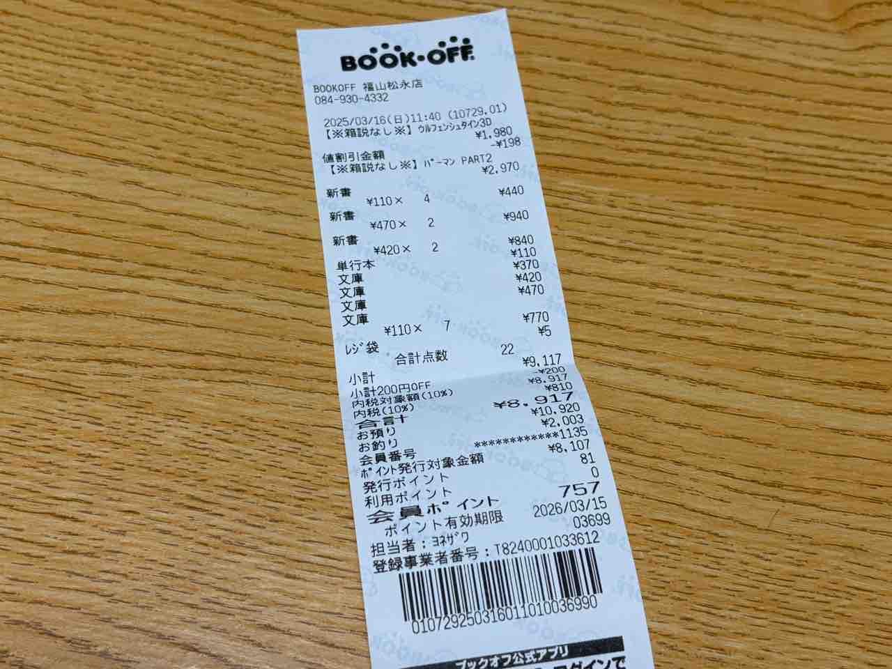 ・・・ザキさん、レシートのしたに「新書」の2文字が見えるんですが・・・