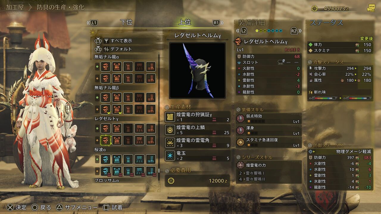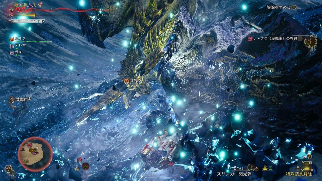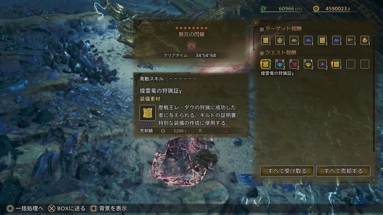 「煌雷竜の狩猟証γ」以外の素材は全て、通常のレ・ダウからゲットできるものですね