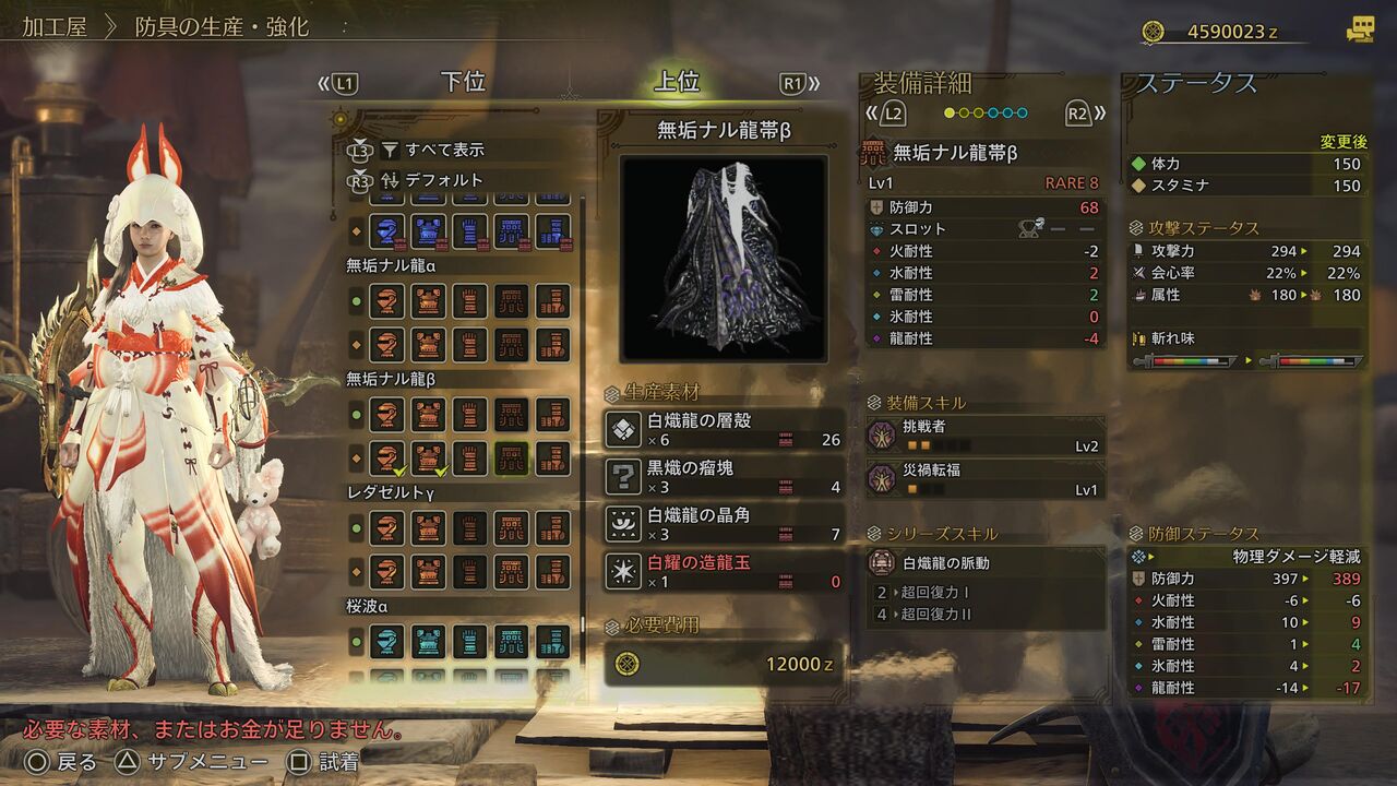 ミツネシリーズみたいな白を基調とした見た目装備だと、余計に狂竜症のエフェクトがグロく目立ちますねぇ