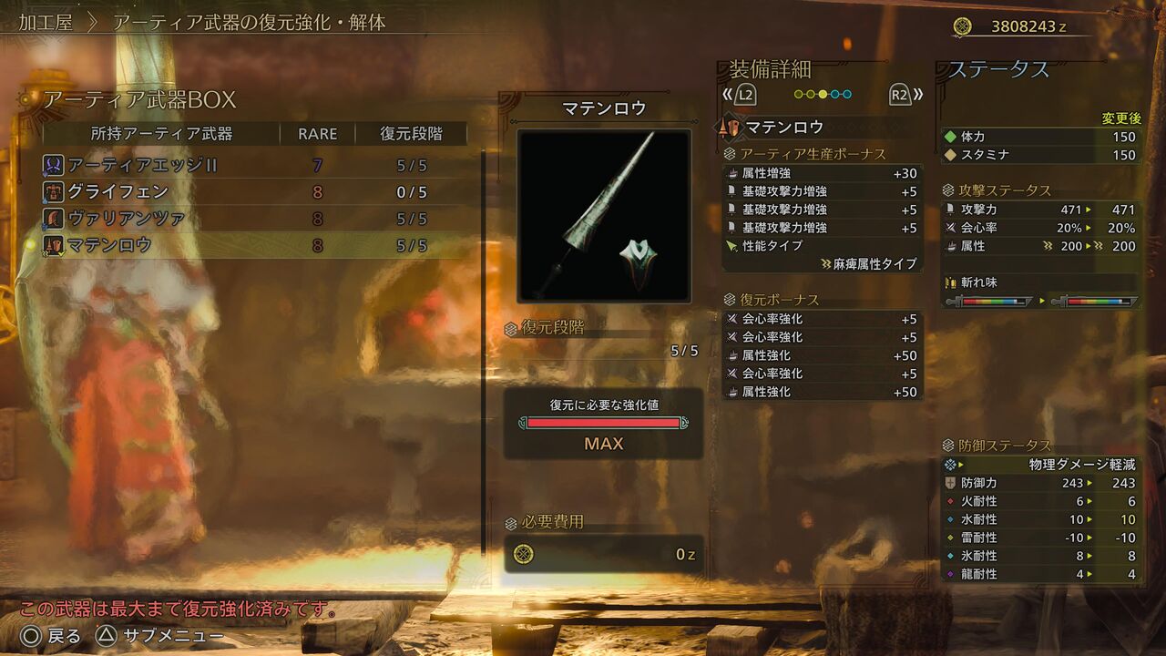 ただ、武器調整と言う名のナーフがもうすぐ来るよな。そのタイミングで麻痺が弱体化されるかもしれんぞ・・・
