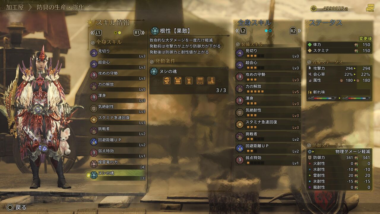 「根性【果敢】」は、どちらかと言えば発動前の攻撃力アップ効果の方が有用そうじゃな。防御力が落ちるので玄人向けと言えるやもしれんが