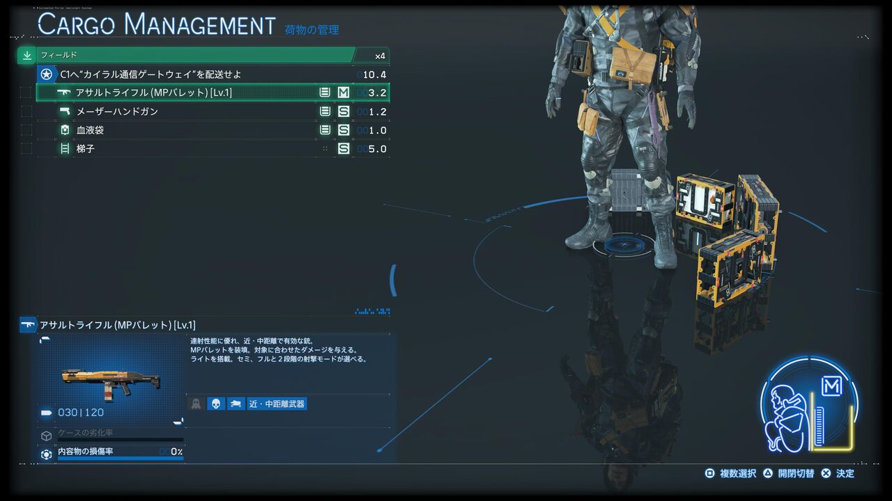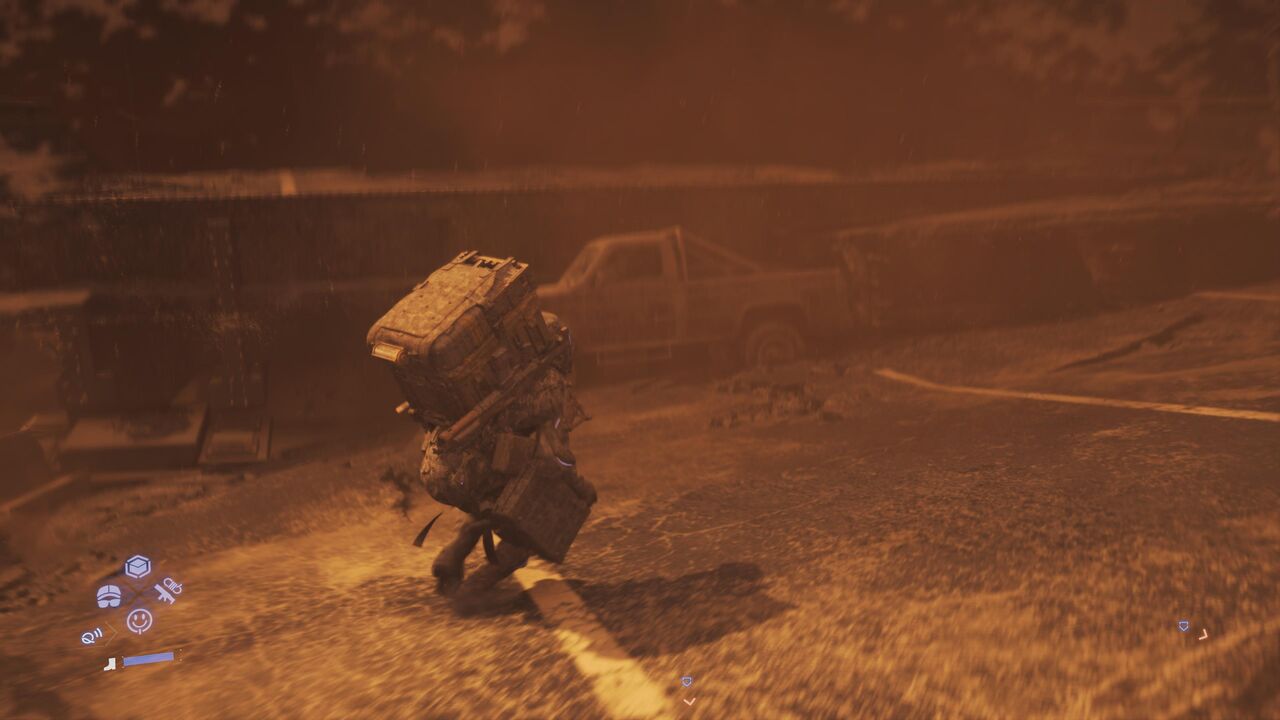 というわけで、サムの新たな「配達」がスタート。荷物を積んだり、武器やツールを身に着けたり・・・など、システム周りはめっちゃ前作と一緒っぽい