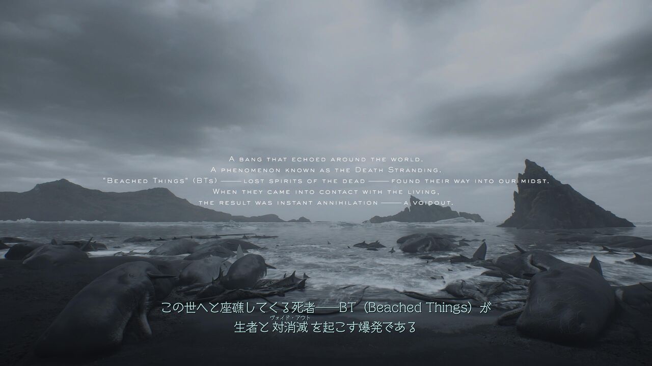 ちなみにタイトル画面で「Story of DEATH STRANDING 1」を選ぶと、前作にも登場したキャラ「デッドマン」が、前作のストーリーをザックリと教えてくれるよ。デッドマン、良いよねぇ・・・
