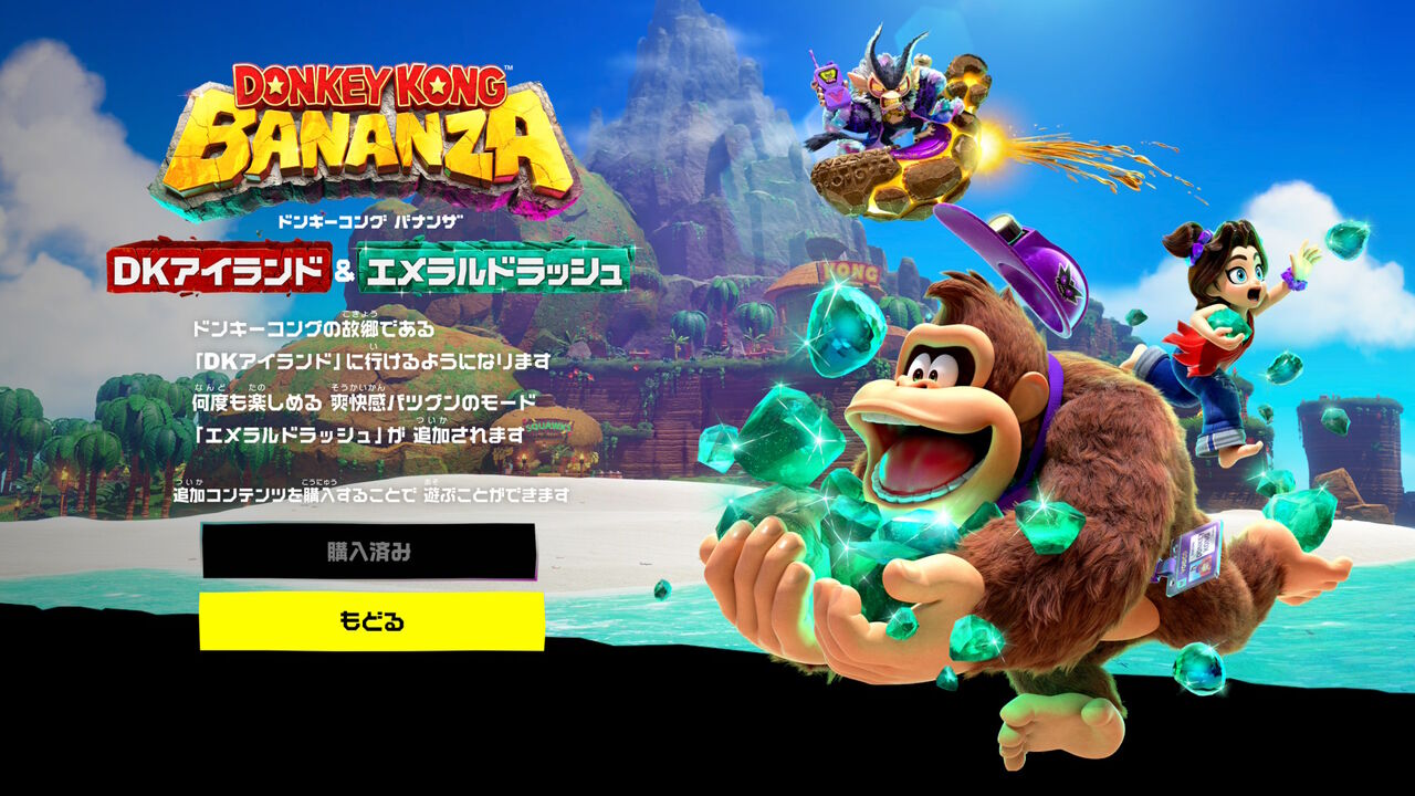 ニンテンドースイッチ2『ドンキーコング バナンザ』の有料追加コンテンツ「DKアイランド&エメラルドラッシュ」が唐突に配信!さっそく購入して、プレイしていきましょう!