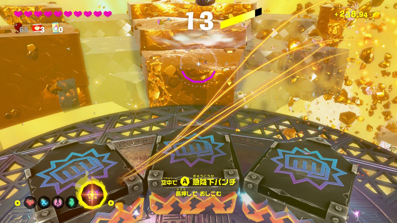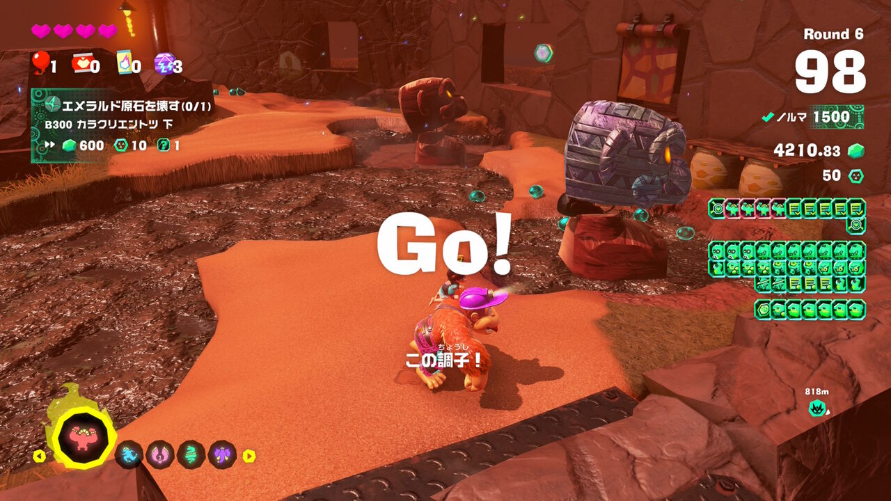 ミッションは、特定の敵を倒したり、原石を壊したり、タル大砲に入ったり、トロッコに乗ったり、特定の地形を壊したりなどなど様々です