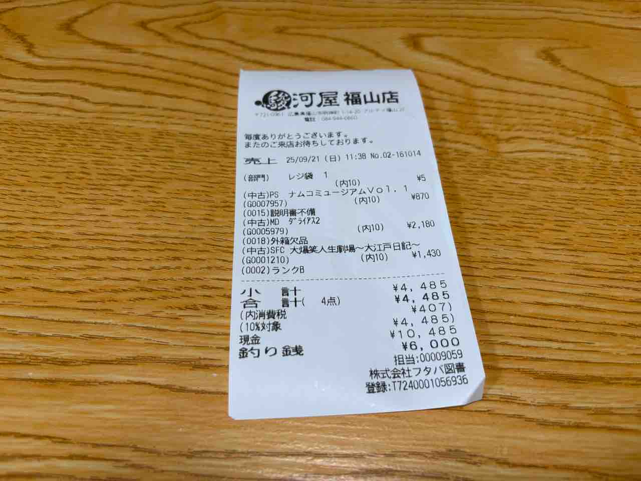 ・・・というわけで、状態の悪さに思うところはあったけど、今回の購入品はここまでです。最後に合計金額を発表するよ