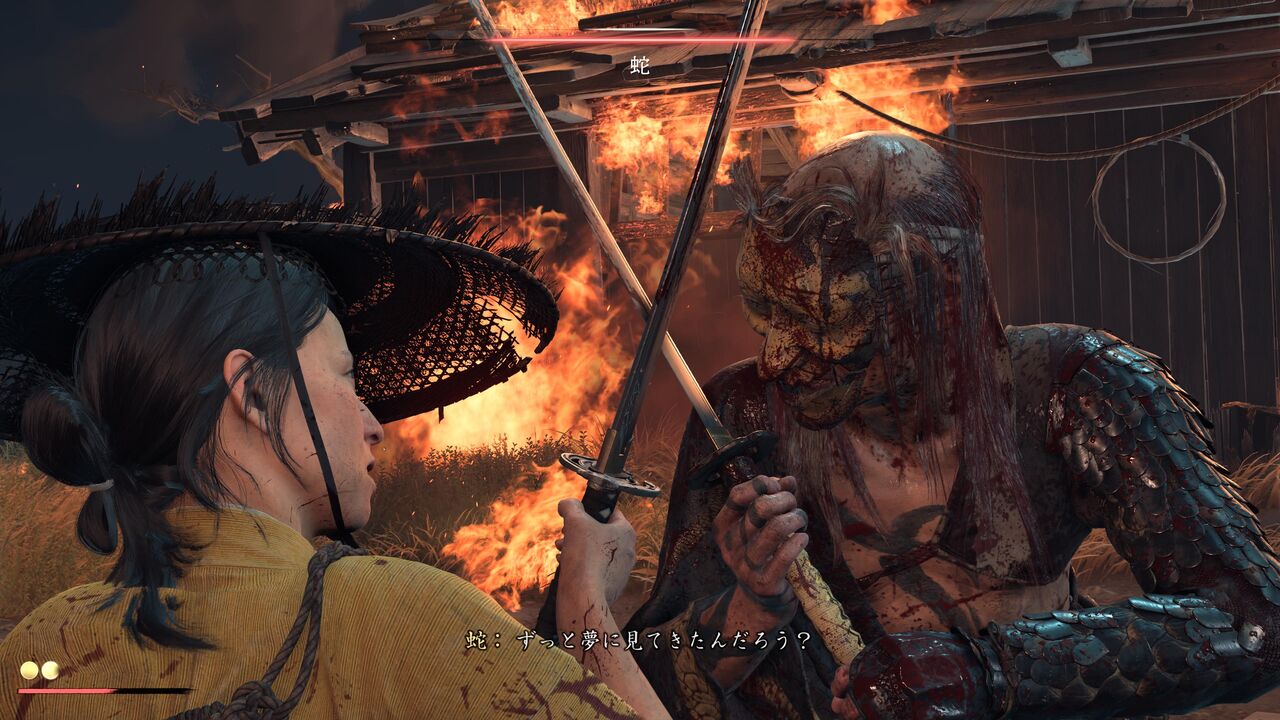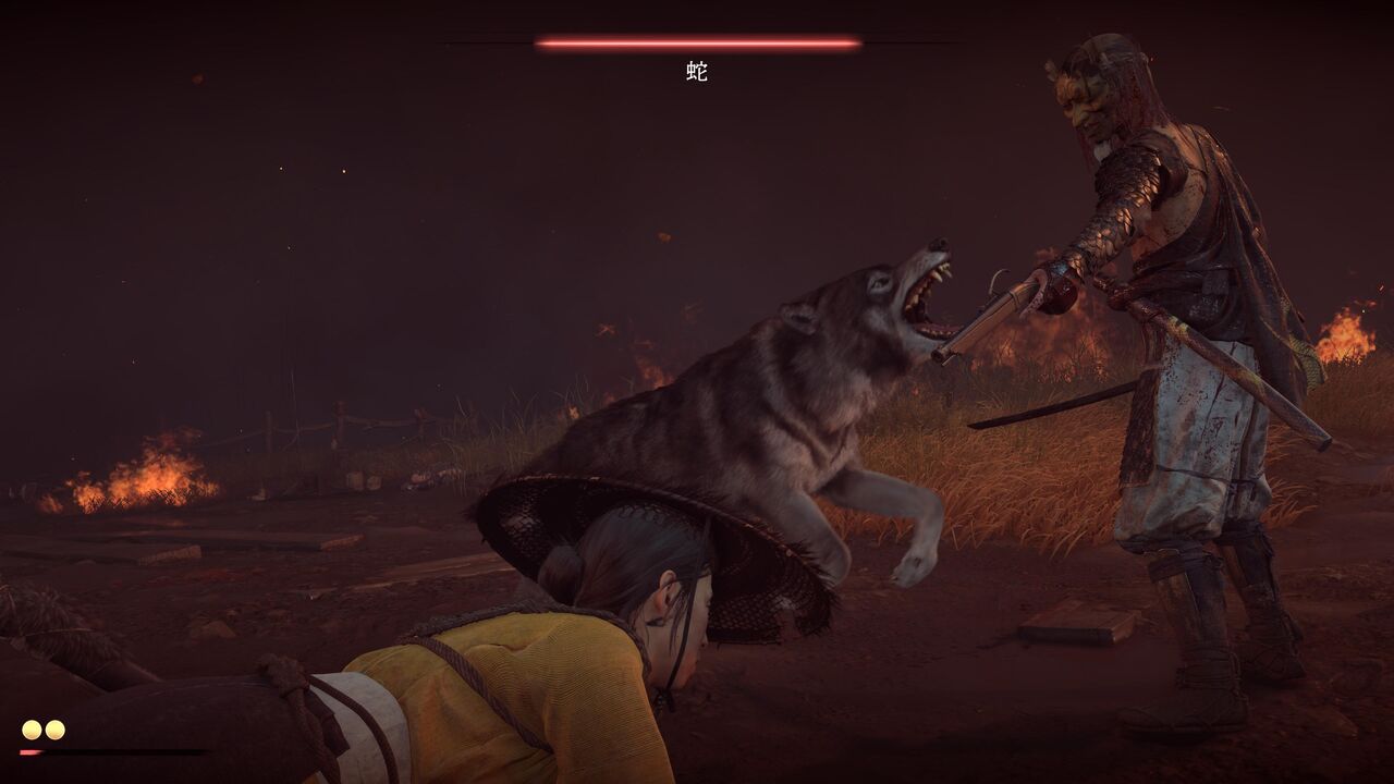 さてと、再び挑戦!鍔迫り合いになったり、仲間(?)の狼ちゃんが助けに来てくれたりなどなどしながら、徐々に「蛇」の体力を削っていきます
