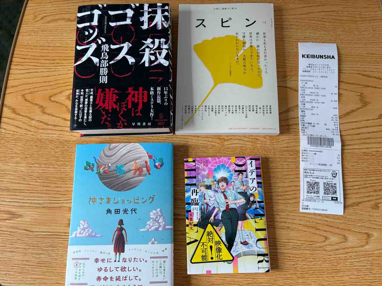 続いては啓文社で買った新品。「スピン」最新号とか、飛鳥部勝則「抹殺ゴスゴッズ」とか