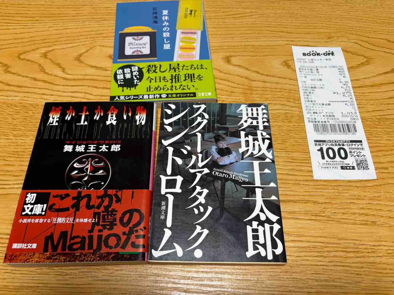 まずはブックオフ 三宮センター街店から。石持浅海の「殺し屋」シリーズ最新作がはやくも中古で売られていたのでゲット。さらに舞城王太郎の作品2冊も買いました