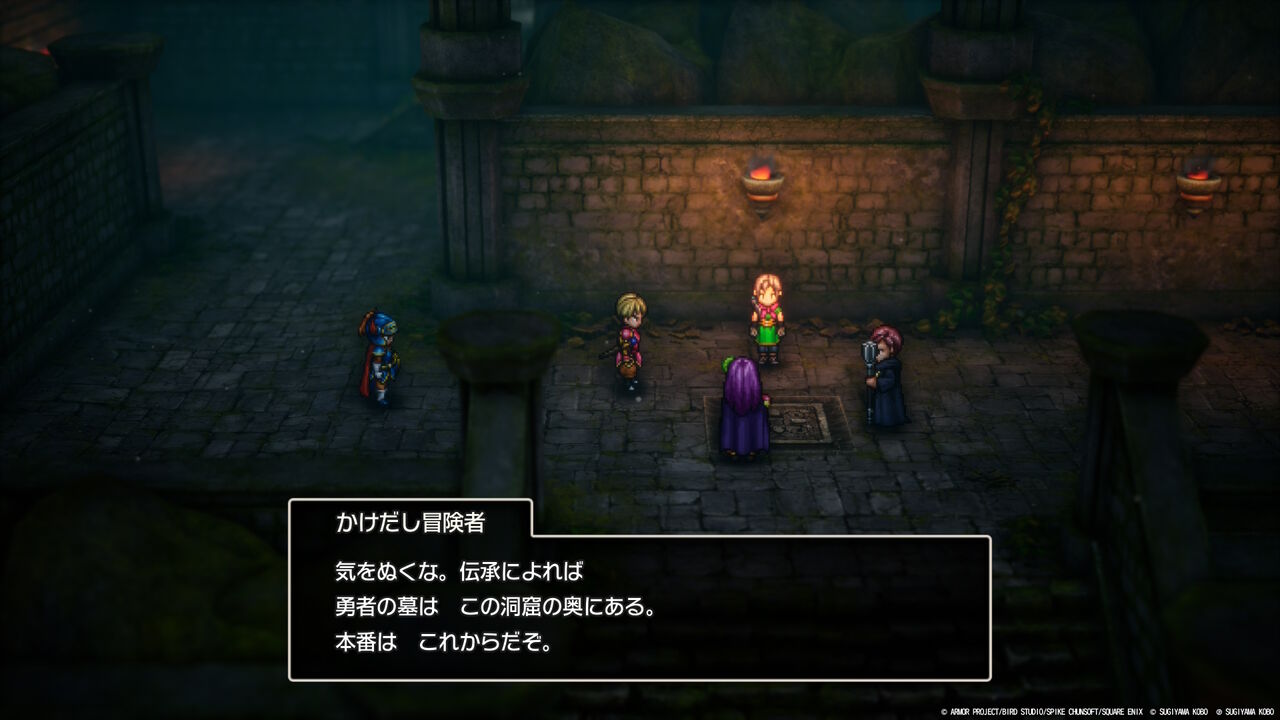 ・・・ちょっと嫌な予感がしつつ「ロトの洞窟」へ。またまた原作にはいなかった、かけだし勇者ご一行みたいなやつらがいるね