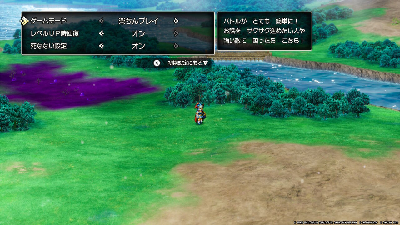 『Ⅲ』のHD-2Dリメイク同様、「楽ちんプレイ」はHPが1で生き残れる仕様ですが・・・難易度を下げたうえで、しなない設定だけオフにすることも可能になったらしいです