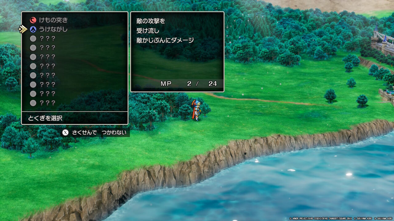 ちなみにリメイク版では、原作にはない「特技」が使えるようになってるね。いきなり「けもの突き」と「うけながし」を覚えてるや